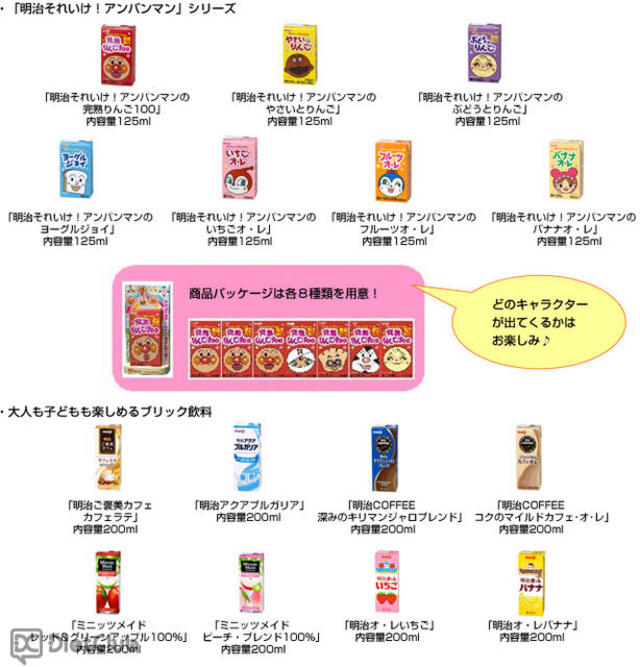 同自販機は、アンパンマンワールドを表現した立体パネルやデザインで、人が近づくとアンパンマンの音楽や声が流れる、「しゃべる自販機」。販売商品は子供向けブリック飲料「明治 それいけ!アンパンマン」シリーズを中心にブリック飲料のラインアップを揃えている。今回は新しく自販機に5キャラクターのデザインが追加されている。
