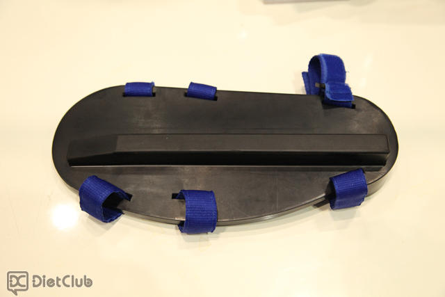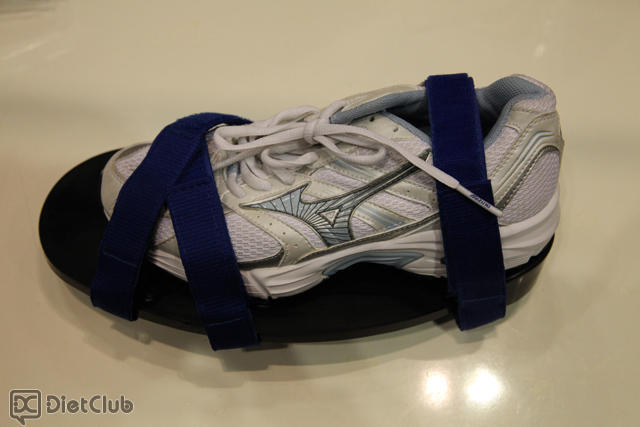 二つ目は、GLABの「リアライン・シリーズ」。このシリーズには靴に着用するバランス・シューズと靴の中に入れるインソールタイプなどがある。その中でも特にバランス・シューズは、裏側に一本のバーが付いていて、それを靴に装着して使用する。そのまま水平に保ちながらスクワットやジャンプを行うだけで、膝のねじれを修正したり、股関節や骨盤を対称にしたりすると同時に筋力を向上するため、アスリートの能力が高められるという器具である。