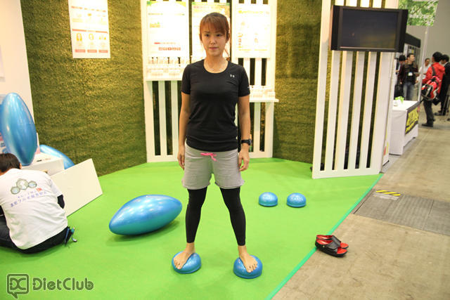 三つ目は、日本ソフケンの「ロードオブボール1」。直径20cmの塩化ビニル樹脂製の半球状の上に乗って、バランスを取って立ったり、足踏みをしたり、スプリットスクワットなどをすることによって体幹力やバランス力を強化できるというもの。小さくて場所も取らず、手軽にトレーニングができる。