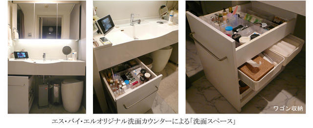 第4弾となる「美楽洗面収納」は、「子育て、仕事、家事で忙しくても、いつもキレイな私でいたい。」という主婦のために、『家事を楽にし、モチベーションが上がる理想の洗面空間』をコンセプトに開発。洗面空間の現況や不満、悩み、理想などのアンケートを社内にて実施し、実際のシミュレーションを行ったという。