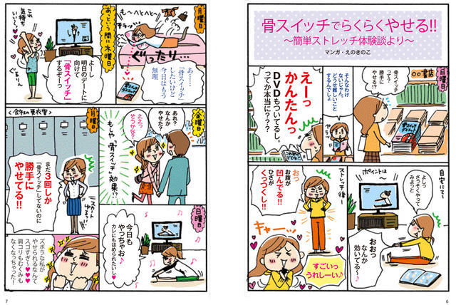 骨スイッチダイエットは、女優、アナウンサー、モデル、専門医なども実践しているという健康ダイエット法。骨を正しい位置に戻すストレッチをおこない、やせる体へ切り替えるというもの。同書の価格は1300円で、DVDも付いてくる。