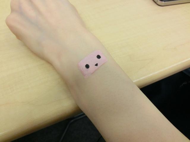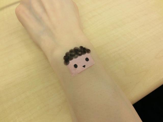 今回、実際に届いた商品を使って、簡単なボディペイントをしてみた。型を肌に当て、ブラシのレバーを引くだけで、簡単にペイントすることができ、簡単なキャラクターであれば、数分で描けてしまった。もちろん、今回が初の試みだったこともあり、何度か練習を重ねてコツをつかめば、もっとカラフルで高度なペイントも可能になるかと思われる。また、単色を使った模様だけであれば、さっと数秒で終了してしまう。現地担当者の説明通り、石鹸と水で簡単に洗い流すこともできた。