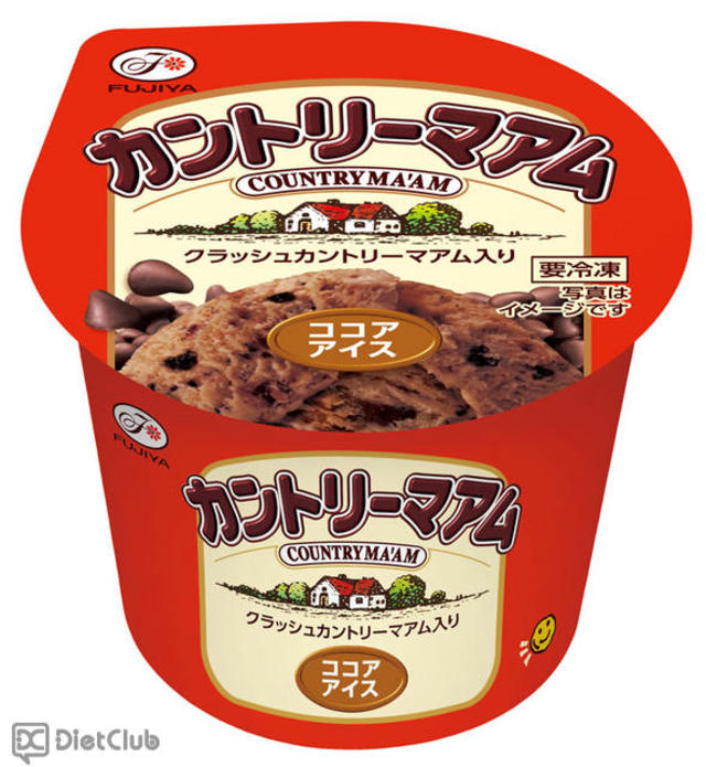 「不二家カントリーマアム(ココア)」は、クラッシュしたカントリーマアム(ココア)をまろやかなチョコレートクリームに混ぜ込んだアイスカップ。風味豊かなチョコチップも一緒に楽しめる。