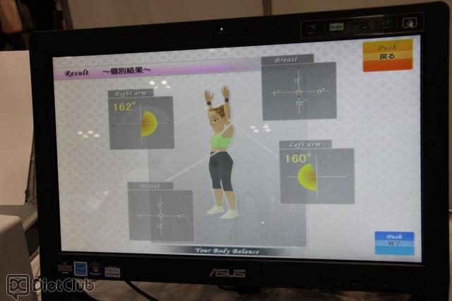 新世代という会社が開発した「THE BODY CONDITIONER」と呼ばれるこの機械は、4つの3Dセンサーを装着し、決められた動作をするだけで、体のゆがみなどを測定してくれる。結果は液晶画面に表示され、体のどの部分が疲れやすい筋肉なのか、どこがゆがんでいるのかが、すぐにわかる。詳細レポートもプリントアウトしてくれる。