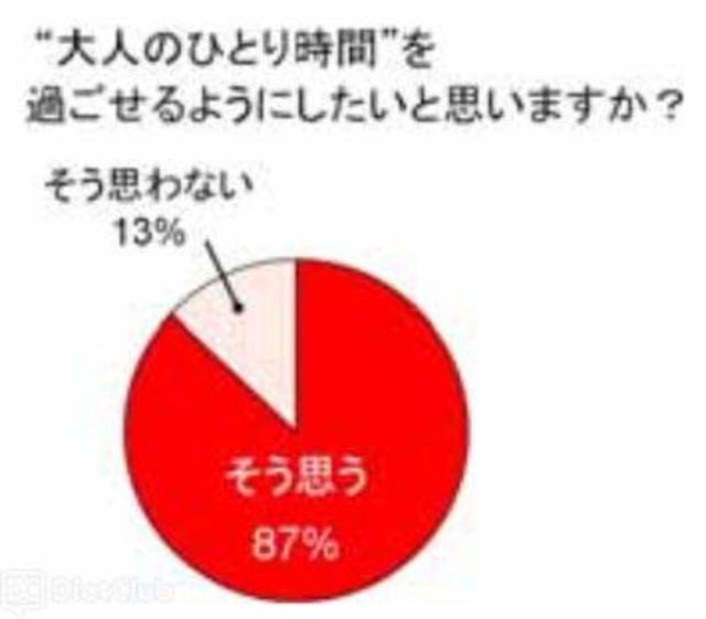 そこで『“大人のひとり時間”を過ごせるようにしたいと思いますか?』と聞くと「そう思う」と回答した人が87%に上った。しかし“大人のひとり時間”を過ごせている人の割合は「0~3歳の子どもを持つ親」が40%で、「小学生の子どもをもつ親」は59%と、子どもがいる家庭では自分自身のための時間よりも、子どもと過ごす時間が優先されており、ひとりで過ごすのは、いわば“憧れ”でもあるようだ。