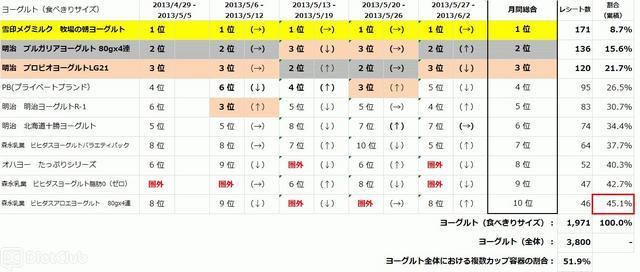 ヨーグルト・ファミリーサイズの売れ筋ランキング