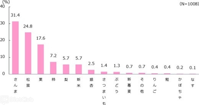 続いて、見たり食べたりすると「秋が来た」と感じる食材について聞いてみたところ、1位「さんま(31.4%)」、2位「松茸(24.8%)」、3位「栗(17.6%)」となった。この季節にしか手に入らない高級食材「松茸」は、秋を感じさせる食べ物として多くの人に認知されているようである。