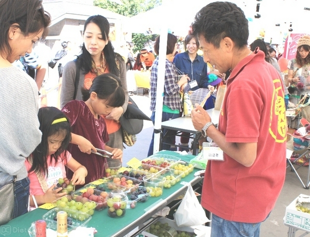 今回で2回目を迎えた同イベントの注目ポイントは、食品販売を通じて“地域間の交流”と“親子で食育を考える”場の提供に加え、“東北の復興支援”活動を展開しているところ。また、毎月その時々の「旬」の野菜をイベントのテーマに掲げる点も特徴で、10月は「ブドウとワイン」がクローズアップされた。