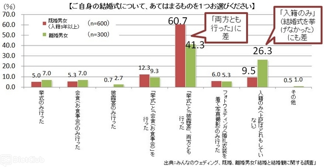 同調査で、『結婚について、あなたの正直なお気持ちをお聞かせください』と質問したところ、「結婚をする価値は、非常にあると思う」と答えた既婚者は46.8%に対し、離婚者は24.3%という結果となった。