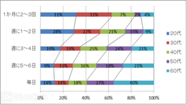 今回ユネスコ無形文化遺産に登録された、一汁三菜を基本とする「和食」の喫食率を尋ねたところ、毎日食べる人は全体の約23%、ほぼ毎日食べる人を含めると全体の38%だった。