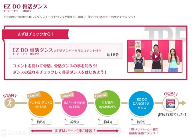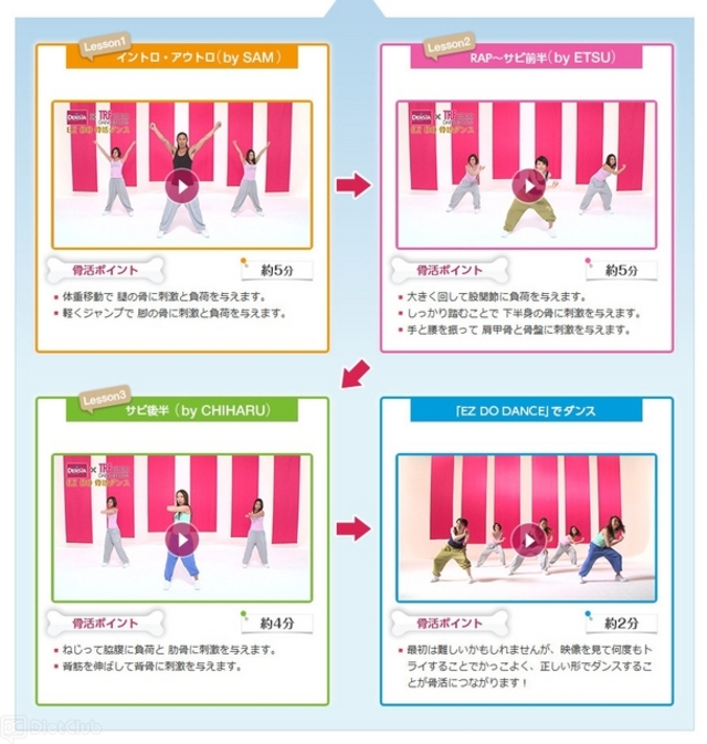 ダンスレッスン動画は、「Lesson1」(約5分/by SAM)、「Lesson2」(約5分/by ETSU)、「Lesson3」(約4分/by CHIHARU)、「EZ DO DANCE」(約2分)の計4本構成になっている。