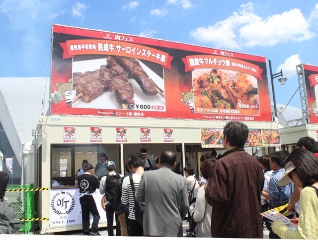 会場で食べられるお肉は、「牛肉」「豚肉」「鶏肉」「馬肉」「世界各国の肉料理」の5カテゴリで、お肉料理だけでなく、スイーツを販売している店舗ブースもある。