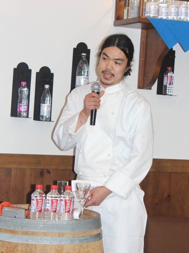 最後に、セミナー会場となった飲食店「ビストロ石川亭 恵比寿ガーデンプレイス店」料理長の畠 辰徳氏が現れ、硬水と軟水を使って調理した「比較料理メニュー」が振る舞われた。