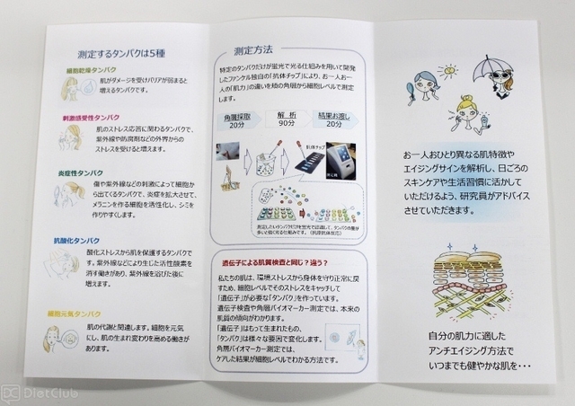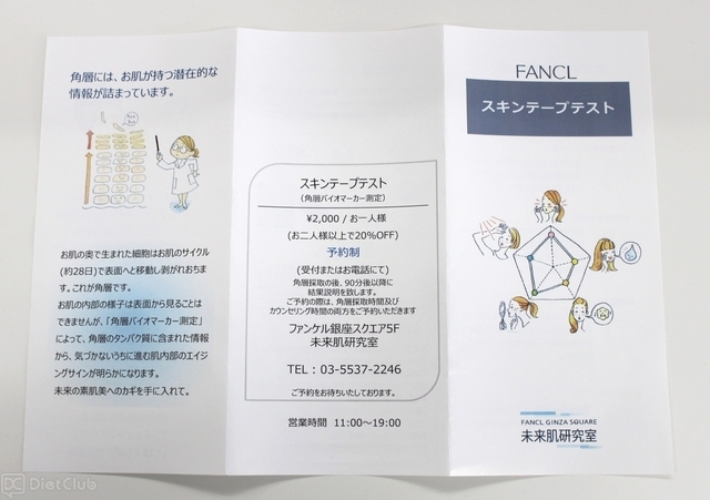 角質バイオマーカー測定の方法はとても簡単。メイクを落とした頬にテープを貼り、角層を採取するだけ。解析は約90分間程度で終了し、その後は、未来肌研究室の研究員が、解析結果を元に肌の特徴や、日頃のスキンケア方法、生活習慣などをアドバイスしてくれる。なお、角質バイオマーカー測定は予約制で、1名につき2,000円の費用がかかるが、2名以上だと20%オフになる。