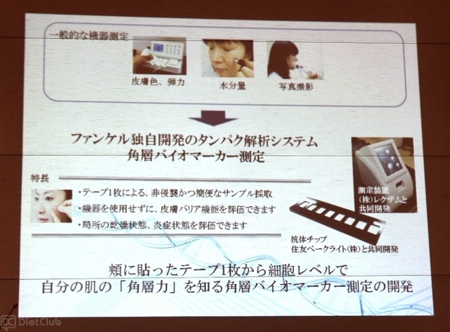 とはいえ、どうやって自分の肌の力を知ればよいのか。そこで松熊氏が紹介したのは、ファンケルが独自開発した「角質バイオマーカー測定(スキンテープテスト)」だった。