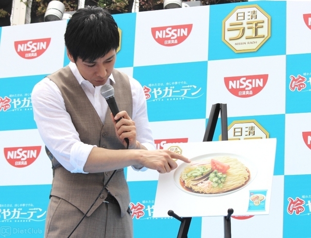 イベント会場には、「日清ラ王」のイメージキャラクターを務めている俳優の西島秀俊が登場。「日清ラ王 冷し中華」のポイントを尋ねられた西島は、『麺だと思いますね。これ、本当に生麺じゃないのか? っていう食感がポイントだと思います』とコメント。