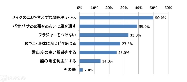 最も“うんざり”する季節は夏…ネオマーケティング調べ 2014 6/22 society 2014年6月22日 夏の仕事中に、あなたが他の人に見られていなかったらやってみたいことは何ですか。 あなたが初対面で NG だと思う異性はどちらですか。 総合マーケティング支援を行うネオマーケティングは、6月2日~6月4日の3日間に、働く20代~30代の男女400人を対象に、「汗かきレベル」や「最も汗をかきたくない身体の部位」など、「夏の暑さ」をテーマにしたインターネットリサーチを実施した。 仕事をする上で最もうんざりする季節を聞いたところ、男女ともに最も多くの人が「夏」にうんざりすると回答した(男性 74.5%、女性 76.5%)。 女性に対して、他の人に見られていなかったらやってみたいことを聞いたところ、半数(50.0%)が「メイクのことを考えずに顔を洗う・ふく」と回答した。 初対面でNGだと思う異性は、男女ともに「容姿は良いがニオイがNG」を6割以上(男性 64.5%、女性 71.5%)が選択している。 society リサーチ 女性向け 男性向け 美容 よかったらシェアしてね! URLをコピーしました! 子どもと大人が一緒に楽しめる“親子ペアルック”の自転車が新発売 夏は“栄養失調太り”に注意! …生活トレンド研究所の調査 この記事を書いた人 浦和 武蔵 関連記事 18kg減のエド・はるみ、心も体もグーググーじゃなかった? 2017年4月7日 10.4キロ減のHY仲宗根泉、ビフォーアフターの姿を公開 2017年2月27日 9.8kg減のココリコ遠藤、「嫌いやな~、こいつ…25年前の体重に戻したかった」 2016年10月12日 20歳になったHKT48兒玉遥「まだ美味しさ分からない」 2016年9月21日 東京マラソン2007~2017の抽選倍率から見る流行の兆し…2017年も過去最高を更新 2016年9月1日 小島よしお「ベッキーと是非一緒に歩きたいですね」 2016年5月19日 椿鬼奴、結婚後の1年で4キロ増!その理由とは? 2016年5月18日 太っているだけで3歳老けて見える!? 2016年4月19日