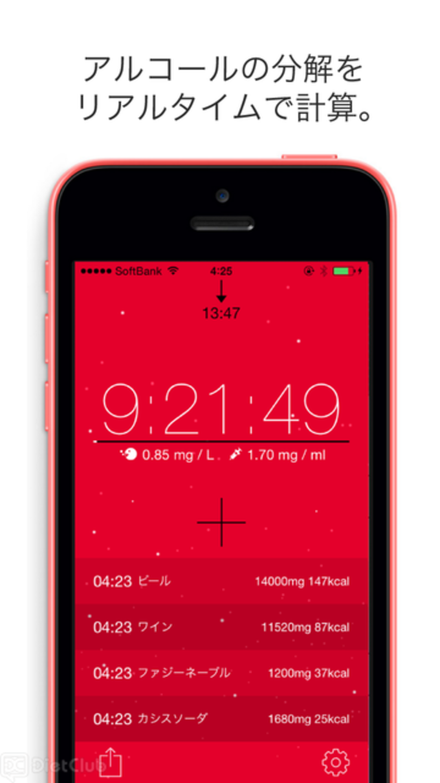 酔いが覚める時間や体内アルコール量がリアルタイムにわかる! iOSアプリ『alcCalc』