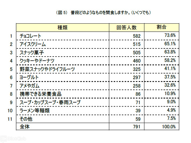 このほか、「健康や美容を考えた場合、選んだ方がよいと思う間食はなんですか」という質問では、95.1%の人が「野菜スナックやドライフルーツ」と答えてトップに。それ以外としては、「ヨーグルト(72.0%)」「携帯できる栄養食品(26.6%)」などを選びたいという意見もあった。