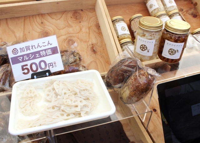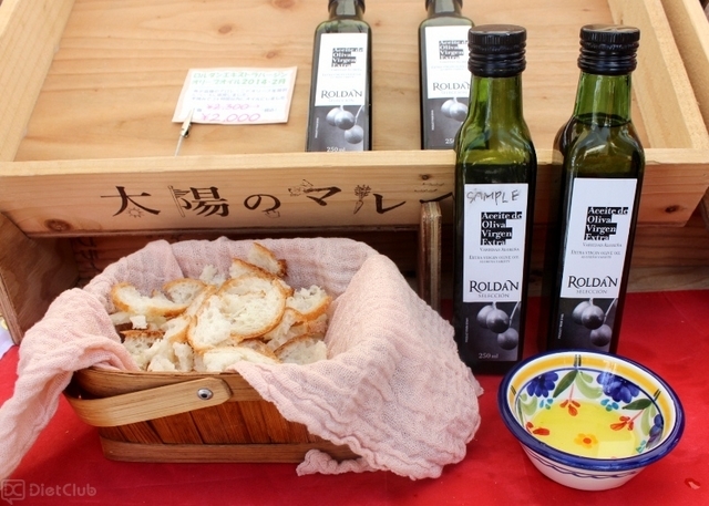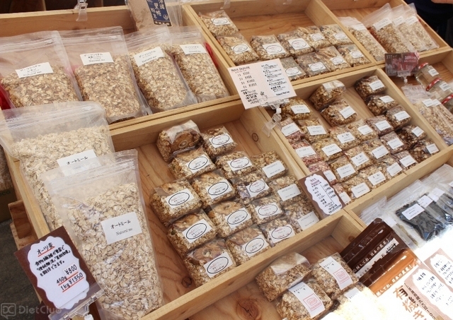 生野菜だけでなく、グラノーラやピクルス、オリーブの瓶詰めなど、野菜を使った加工品も多数あり、商品によっては、その場で試食することもできた。