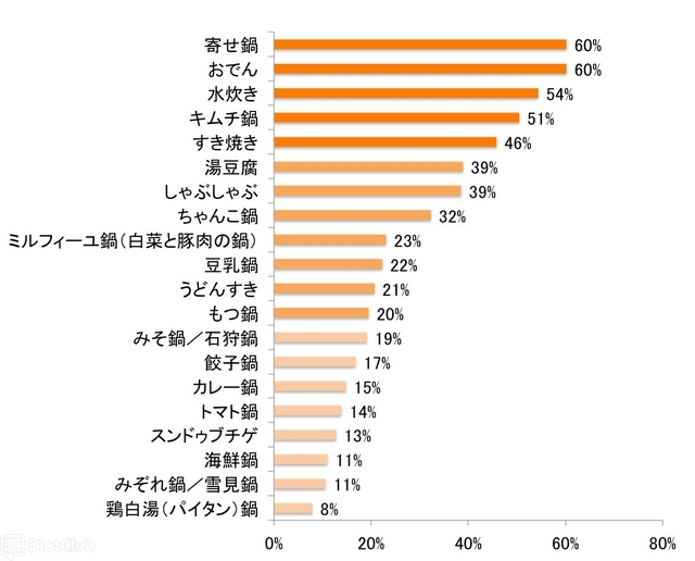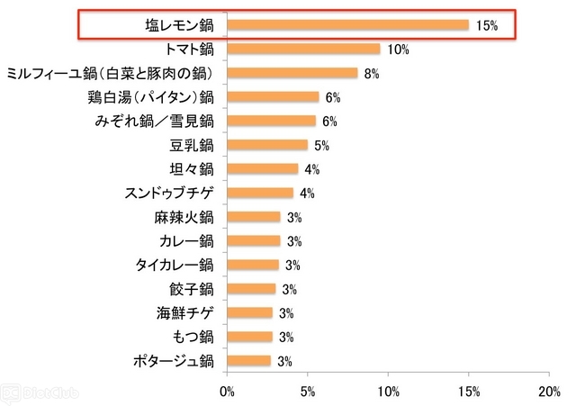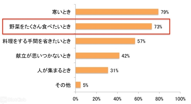 冬の食卓に鍋料理が登場する頻度は毎週!? …クックパッド調べ 2014 9/17 food 2014年9月17日 あなたが冬場にご家庭で鍋を食べる頻度を教えてください あなたは鍋のレパートリーをどのくらいお持ちですか? あなたはどのような時に鍋を作りますか? あなたがご家庭でよく作る鍋はどれですか? 今年特に作ってみたい、注目の鍋はどれですか? クックパッドは、8月26日~9月1日の期間に、レシピサイト「クックパッド」ユーザー3,064人(女性2,771人、男性293人)を対象に、鍋に関するアンケートを実施した。 冬に家庭で鍋を食べる頻度を聞いたところ、1人あたり月に平均5回、週に換算すると平均1回以上鍋を食べていることがわかった。また、鍋のレパートリーは1人あたり平均4.5種類となり、8種類以上との回答も全体の約1割を占めた。 どのようなときに鍋を作りたいかについて聞いたところ、「寒いとき」に次いで「野菜をたくさん食べたいとき」との回答が第2位となった。 今年特に作ってみたい、注目の鍋について聞いたところ、今年の春からクックパッドで大ブームとなっている万能調味料「塩レモン」を使う鍋が第1位となった。 food リサーチ レシピ 料理 よかったらシェアしてね! URLをコピーしました! ダイエット中でも罪悪感なし!? 「アーモンド」と「低糖質」にこだわったプリンの魅力と味 ゴールドウイン、『MIPスポーツゲームズ』に特別協賛…「循環型リサイクルTシャツ」などを提供 この記事を書いた人 浦和 武蔵 関連記事 ねっとり濃い味なのにダイエットに最適!? 2017年3月14日 山本耕史、妻・堀北真希と「外でも普通に飲みます」 2016年5月23日 種類は100以上! 二子玉川で『カレーパン博覧会2016』が開催…3月6日 2016年3月1日 ブルボン、GABAを配合したクラッカーなどを「機能性表示食品」として発売 2016年2月9日 「レシピブログ」に参加している料理家や料理ブロガー30名による“太鼓判レシピ”を紹介 2016年2月8日 アサヒ飲料、機能性表示食品として「肌の潤いを保つ」清涼飲料水を発売…3月8日から 2016年1月29日 豪華な食べ比べ弁当や人気スイーツが集結する『食の大北海道展』が1月14日から開催 2016年1月13日 1月9日&10日、東京・勝どきで『太陽のマルシェ』が開催 2016年1月6日