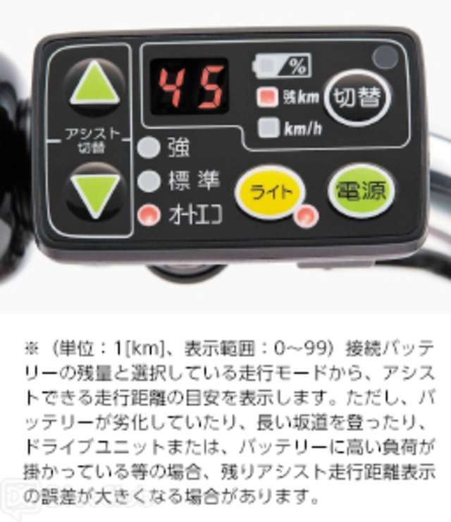 同商品は、実用的な自転車機能を備えたホーム系電動アシスト自転車のベストセラーモデル。2015年モデルでは、従来より重量を約20%軽量化、容積を約16%削減した新開発の小型ドライブユニットを搭載したことで、車体重量を約800g(DXモデル26インチサイズ)軽量化している。電動アシスト自転車を利用している方の最も大きな不満点である「重量」を改善し、高齢者や、女性でも、より扱いやすい仕様となっている。
