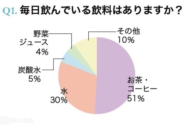 同調査で『毎日飲んでいる飲料水』について尋ねたところ、1位は「お茶・コーヒー(51%)」となり、2位は「水(30%)」だった。