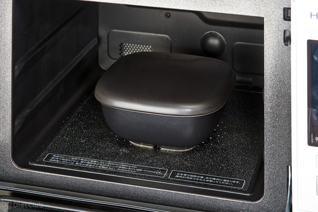 形状は、角型で浅めのシンプルデザインとなっており、ご飯をしゃもじで混ぜた後、余分な水分を飛ばしやすく、ご飯をよそうときには隅にご飯粒が残らないように角を丸く設計しているので、使いやすく、洗いやすい形状となっている。また、残りごはんを使ったアレンジレシピも付いている。更に、電子レンジで温め直す時には、陶器に吸収されていた水分が放出されるのでふっくらとしたご飯に仕上がる。