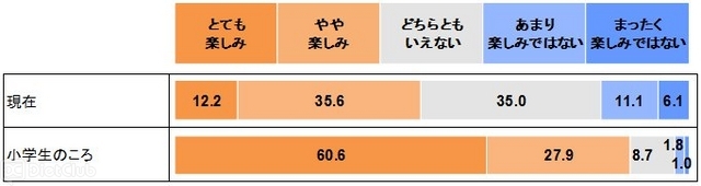 「小学生のころ」に、「お正月」を楽しみにしていた割合が約9割と非常に高い結果となったが、年代とともに、「お正月」を楽しみにしている程度が低くなっていることがわかった。