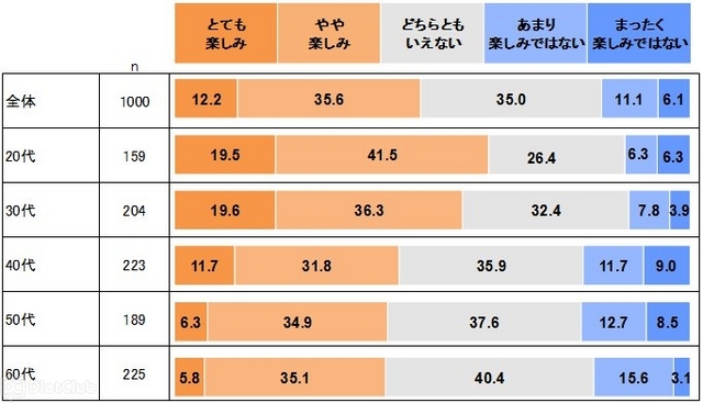 同調査は12月29日から2015年1月3日までの期間の予定を伺い、「年末年始」「大晦日」「お正月」のイメージ、「お正月」の楽しみ程度を把握することを目的としている。11月10日から12日の間、楽天リサーチに登録しているモニターの中から、全国の20代から60代の男性および女性、計1,000人(2013年10月1日現在の人口推計値に準じた「地域×男女×年齢」別割付)を対象に行われた。