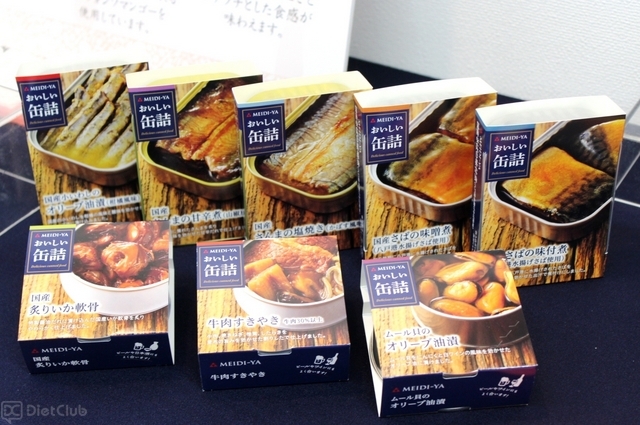 今回の発表会で披露されたのは、「国産小いわしのオリーブ油漬(柑橘風味)」「国産さんまの甘辛煮(山椒風味)」「国産さんまの塩焼き(かぼす風味)」「国産さばの味付煮」「国産さばの味噌煮」「国産炙りいか軟骨」「牛肉すきやき」「ムール貝のオリーブ油漬」の8商品で、魚介系を中心としたラインナップだった。