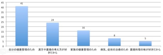 一方、普段から薬膳を食べているという人たちに、薬膳を食べる理由を尋ねたら、「自分の健康管理のため」という回答がトップに。そのほかには「漢方や薬膳の考え方が好きだから」「家族の健康管理のため」「病気、症状の治療のため」「薬膳料理の味が好きだから」という回答もあった。