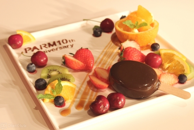 また、カフェでメニューを1品以上注文すると「PARMのチョコ付け体験(一人につき1本)」が行えたり、1日50皿限定の「PARM10周年記念オリジナルデザートプレート」などが用意されている。