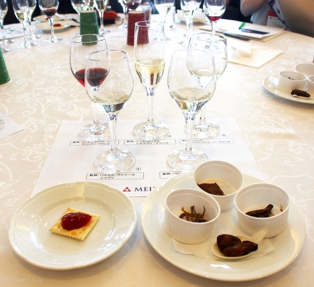 イベント参加者たちは、日本ソムリエ協会認定のシニア・ワイン・アドバイザーである白須知子氏がセレクトした5種類のワインと、明治屋の缶詰商品を一緒に味わい、相性の良さを吟味していた。