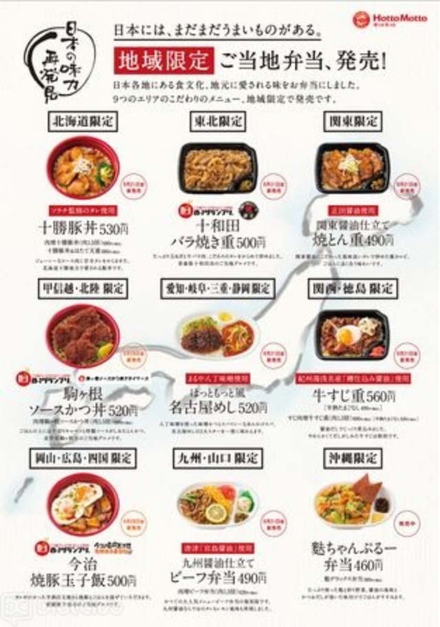 全国で地域限定メニューを発売するのは「ほっともっと」で初となる取り組み。今後も、日本各地にある食文化や地域の特色を活かしたメニューの販売など、今まで以上に地域に密着した店舗を目指していく予定とのこと。