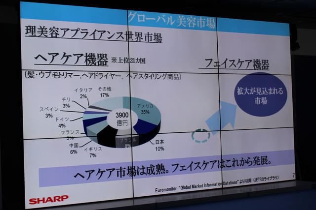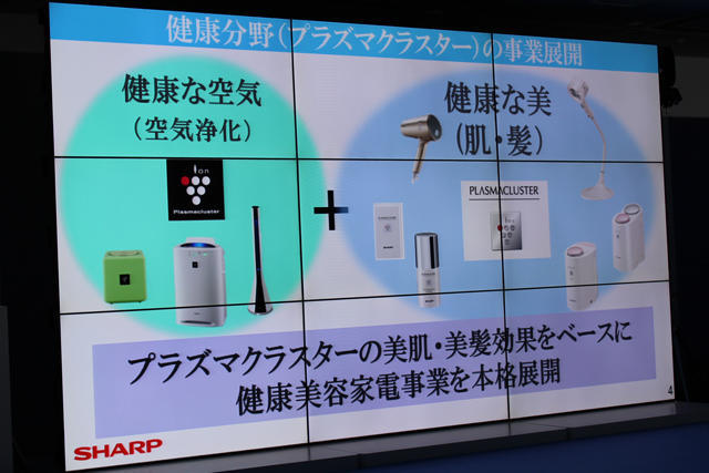 さらに、同社のプラズマクラスター機器事業部で健康美容事業推進センター所長の六車智子氏は、「フェイスケアはこれからの分野、プラズマクラスター効果を生かした商品展開を積極的にしていく」と語り、健康分野を拡大していく予定だという。また、「女性だけでなく老若男女に広め、事業の柱として築いていきたい」と語った。