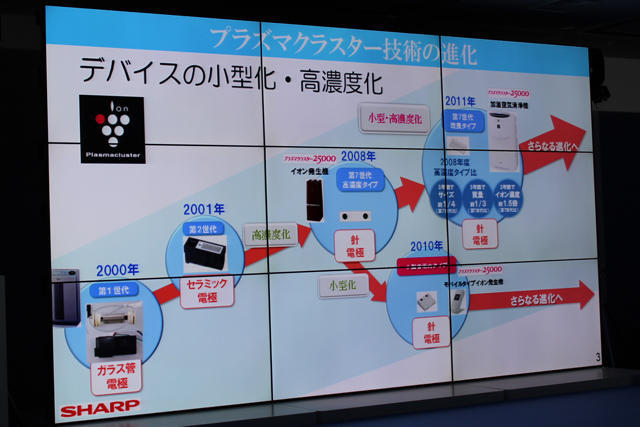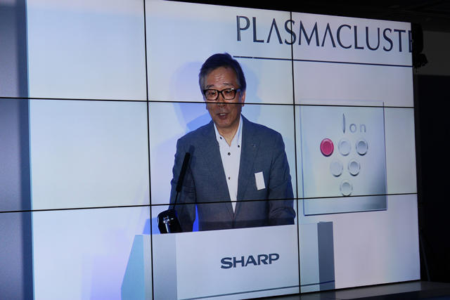 登壇した同社のプラズマクラスター機器事業部長の長谷川実氏は、プラズマクラスター技術の進化について、「これまで、小型化・高濃度化を進めてきた」と語り、さらなる進化として、今後は超小型化を進めていくという。