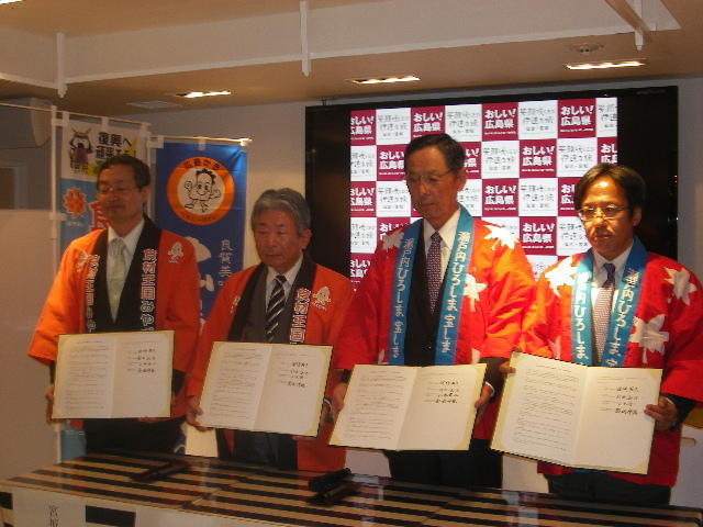 協定締結式は、都内にある広島県ブランドショップ「TAU」にて行われた。行政及び協同組合の関係者のほか、ギャル視点で魚食文化を広める「ウギャルプロジェクト」のメンバーや、広島県のキャラクター「ブンカッキー」、宮城県のキャラクター「むすび丸」らも参列し、連携に向けて握手を交わした。