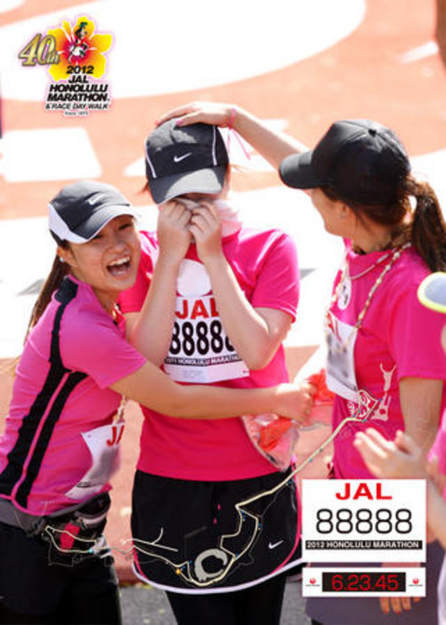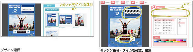 同商品は「オールスポーツコミュニティ」で掲載・販売している写真の中から、お気に入りの1枚に、ゼッケン番号、ゴールタイムなどを自動合成できるというもの。写真に記録情報を組み込んでデザインすることで大会参加の記念を演出し、より思い出を楽しんでもらいたいと考えて開発されたという。