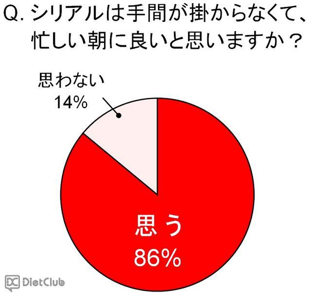 こうした母親たちの頑張りを支えているひとつに、時短テクなどの工夫があげられる。同社では、時短テクとして朝食でのコーンフレーク等、シリアルの利用をすすめている。今回の調査でも、「シリアルは手間が掛からなくて、忙しい朝に良いと思う」というママは86パーセントにのぼっている。