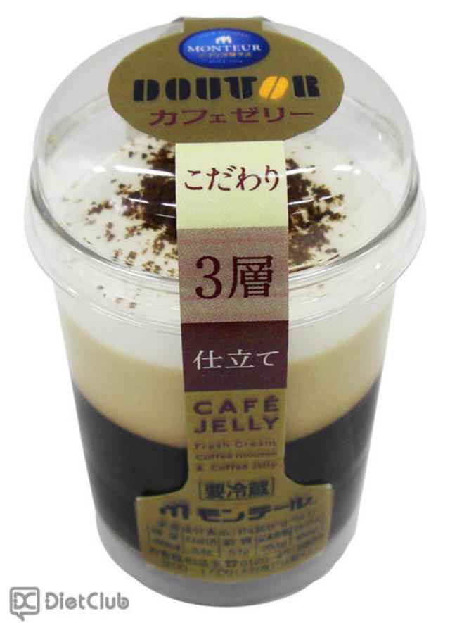 ドトールコーヒーとのコラボ商品「カフェゼリー」は、ゼリーのミルクコーヒームースを重ねたあと、同社のコーヒーパウダーをふりかけたコーヒーゼリー。アイスコーヒーをイメージしてつくられており、コーヒーの旨みとビター感が特長だ。