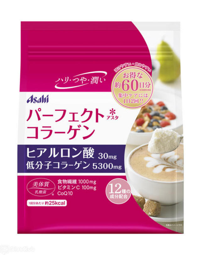 『パーフェクトアスタコラーゲン パウダー』の全12種の成分はそのままに、お得な価格でより気軽に利用できるように60日分を発売する。1日2回使っても30日分使えるボリュームで、もっとキレイを磨きたい女性や集中的にケアしたい女性には、1日2回をおすすめしている。パッケージは、光沢感のあるデザインに仕上げ、写真を用いることで使用シーンをわかりやすく表現している。
