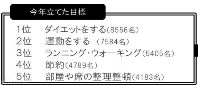調査で「今年どんな目標を立てましたか?」と質問したところ、以下のようなランキングになった。