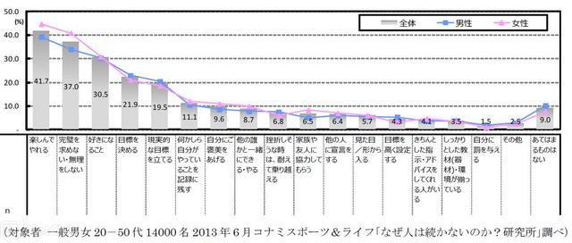 このたび、コナミスポーツ&ライフが立ち上げた「なぜ人は続かないのか?研究所」が、20代から50代の男女、20,000人を対象に「今年立てた目標」について調査を実施し、その結果を発表した。