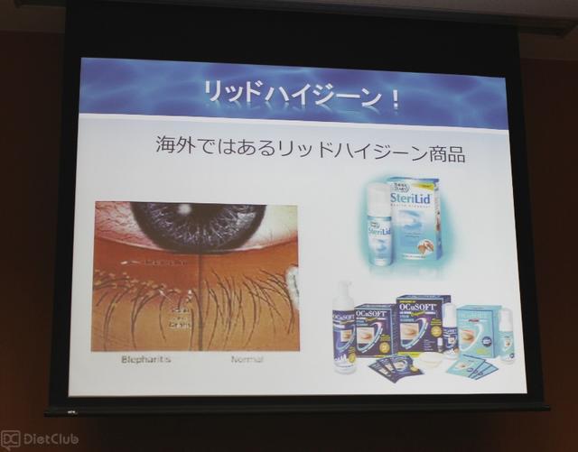 なお、目元を洗浄し、マイボーム腺を清潔に保つことを「リッドハイジーン」といい、すでに海外では専用商品が販売されているが、海外製品を日本人が使用すると強い刺激があり目にしみてしまう。そういった問題点を解決した日本人向けのリッドハイジーン専用商品が7月中旬に発売され、一部のコンビニエンスストアや医療機関(クリニックや薬局)、アマゾンで購入することができる。
