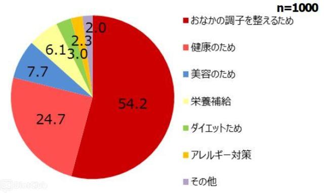 続いて、『ヨーグルトを摂取しているもっとも大きな理由』を尋ねると、以下のような結果になった。