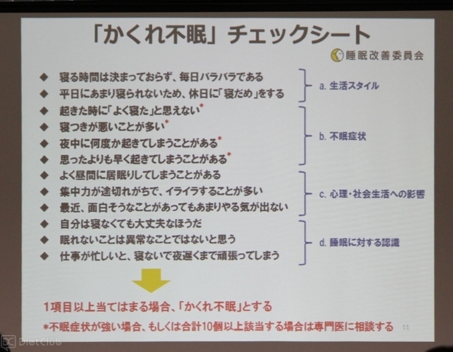 ■「かくれ不眠」チェックシート/睡眠改善委員会