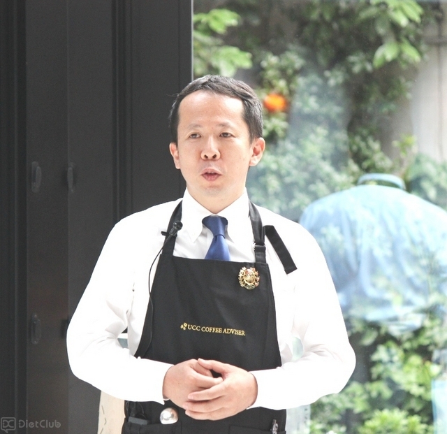 その後、イベントの第一部として、UCCコーヒーアドバイザーの森 渉氏による「ハンドドリップ講座」がスタート。森氏は、UCCコーヒーアカデミーの立ち上げから携わっているコーヒーのプロフェッショナルであり、ブラジルで公認されているコーヒー鑑定士の資格だけでなく、コーヒーの品質を評価するカッピング技能資格の保有者でもある。