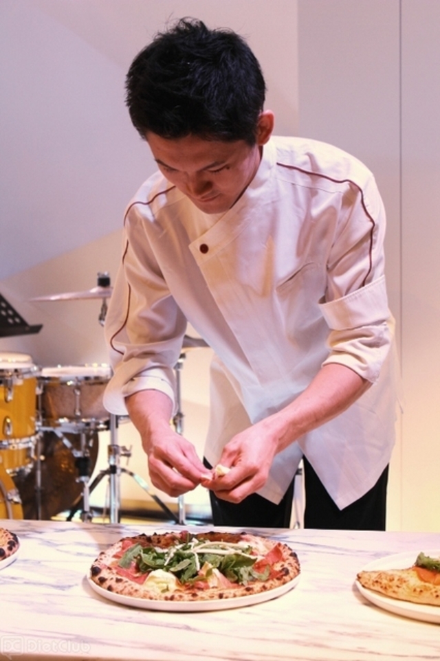 ピッツァを焼いてくれるシェフは、リーズナブルな価格と立ち飲みスタイルで注目を集めている飲食店「俺のイタリアン」で活躍している日高孝太朗氏。日高氏は、キャンペーンのためだけにオリジナルピッツァを8種類考案(うち2種類は、俺のイタリアンで提供しているものをアレンジしている)したという。