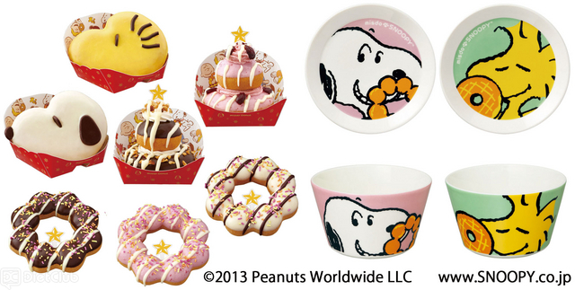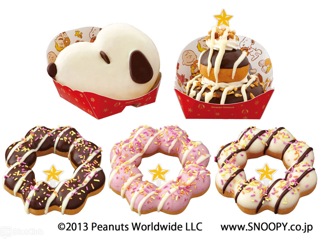 2013年のクリスマス限定商品は、キャラクターの「スヌーピー」と「ウッドストック」の顔型ドーナツや、クリスマスツリーに見立てた『チョコツリー』&『ベリーツリー』。